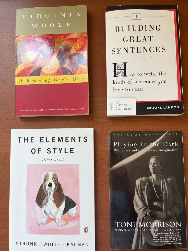 Two of these are criticism books; two of these are craft books. To the criticism, Virginia Woolf completely changed my perspective on what it means to be a (trans) woman writer. If you’re interested in this blog, you will get value out of it if you haven’t read it yet. To those who’ve read Woolf and still have an interest in the history of feminist literary criticism, I would also recommend that you go check out Mary Wollstonecraft and George Eliot’s “Silly Novels by Lady Novelists,” but I don’t have either of those in print. Similarly to how A Room of One’s Own changed my perspective on the intersection of gender and writing, Playing in the Dark did something similar for race. Besides, if you haven’t read Toni Morrison, you’re absolutely missing out. As to craft, Building Great Sentences is the single best book about the craft of good writing that I have ever read. It breaks down the technical aspects of a complex sentence, how to write one, how to make sure it works – it is utterly brilliant and anyone who wants to level up their prose should read it.