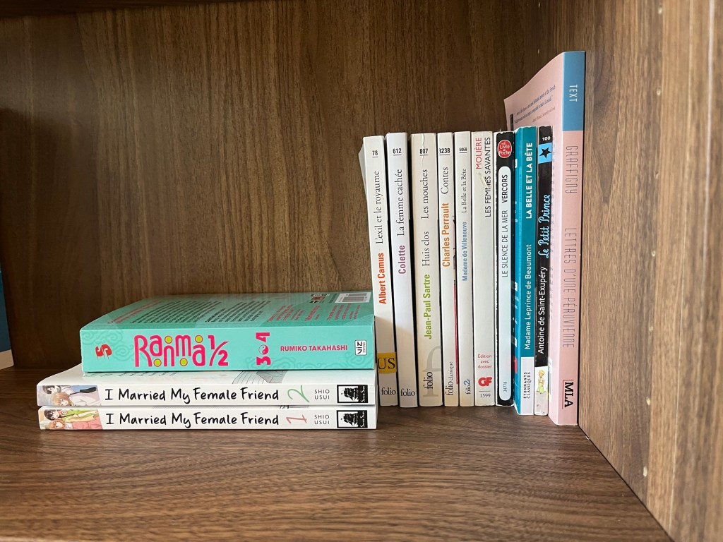 Finally, at the end of my bookshelf, we’ve got a small selection of foreign books. The manga is in English cause I can’t read Japanese, but all of the French books are in French. I should be a case study for the failures of the American foreign-language education system lol. I took eleven (11) years of formal French education, and I do not think that I ever even reached what could be called proficiency lol. I can muddle along but I don’t think I’ve ever had a conversation in French where I haven’t made a total fool of myself. “Franglais” was the word my teachers always used to describe my particular ailment. In 11th grade, my teacher would rip my essays up in front of the entire class because they were so bad. I sincerely apologize to the people of France – I really did try! My brain always recognizes the vestigial architecture of medieval French within English grammar then substitutes that fancy archaic English grammar whenever I’m supposed to have modern French knowledge…. Oh well. At least I’ve got some cool books to show for it.